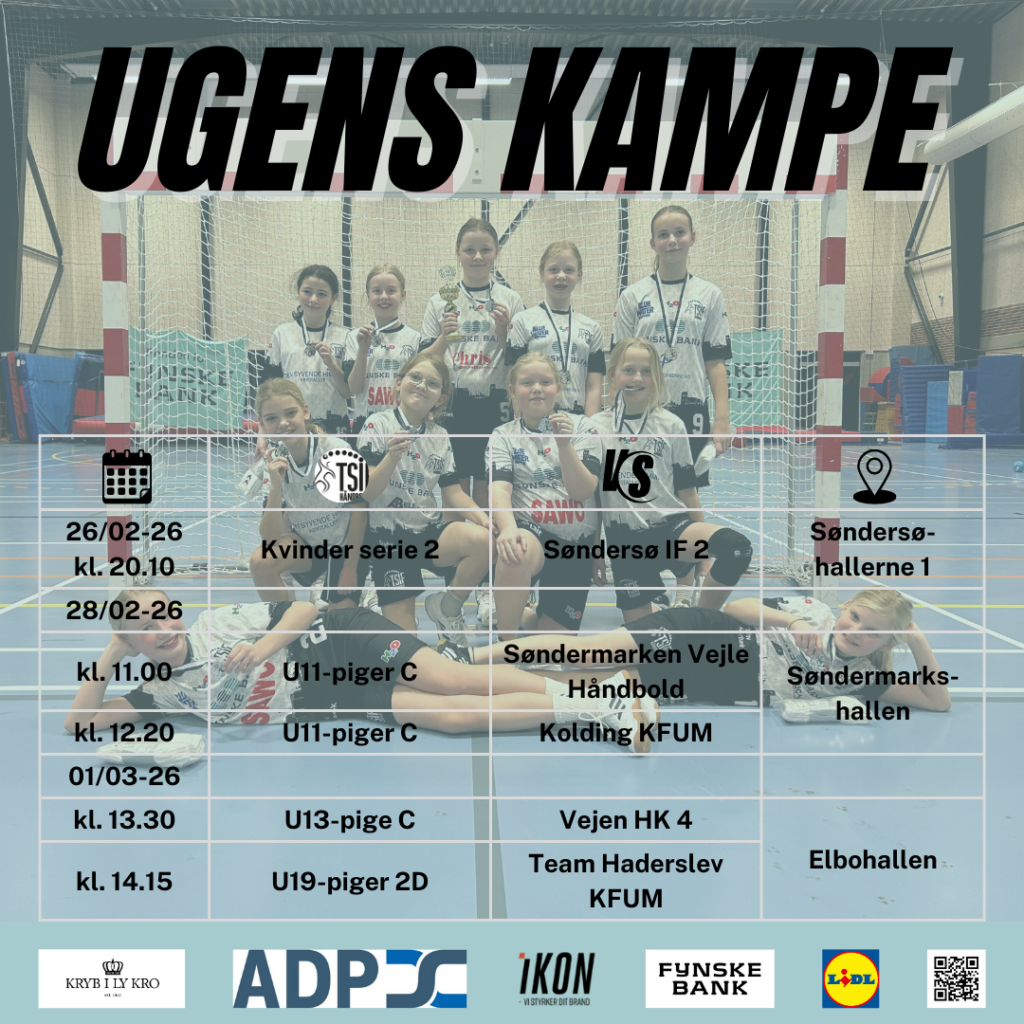 Ugen slutter med hjemmestævne søndag den 1. marts, hvor U13-piger tager mod Vejen HK kl. 13.30, og U19-piger 2. division spiller mod Team Haderslev KFUM kl. 14.15.